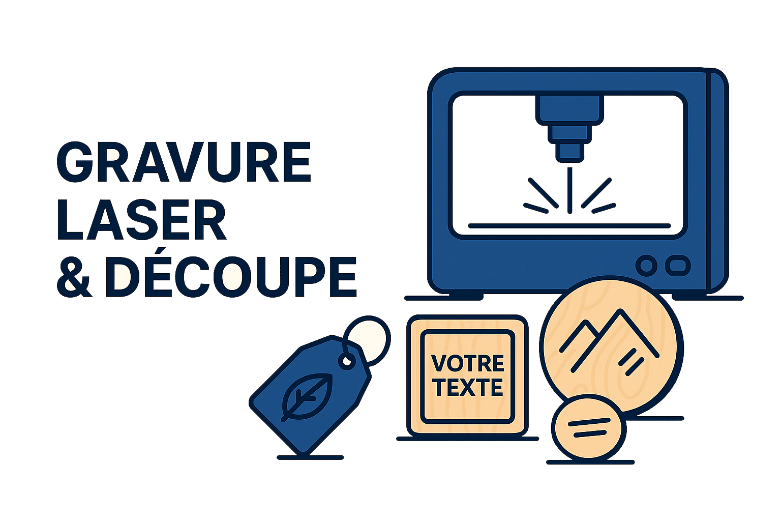 Découvrez nos services de personnalisation : textiles, mugs, goodies, stickers, gravure, impression 3D et résine.